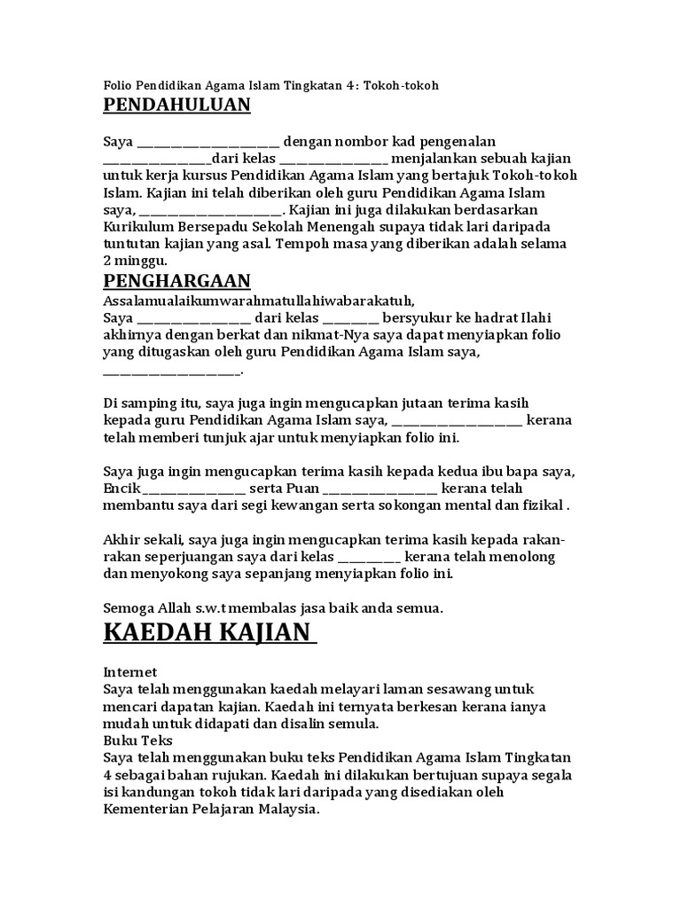 Folio Pendidikan Agama Islam Tingkatan 4 Pdf
